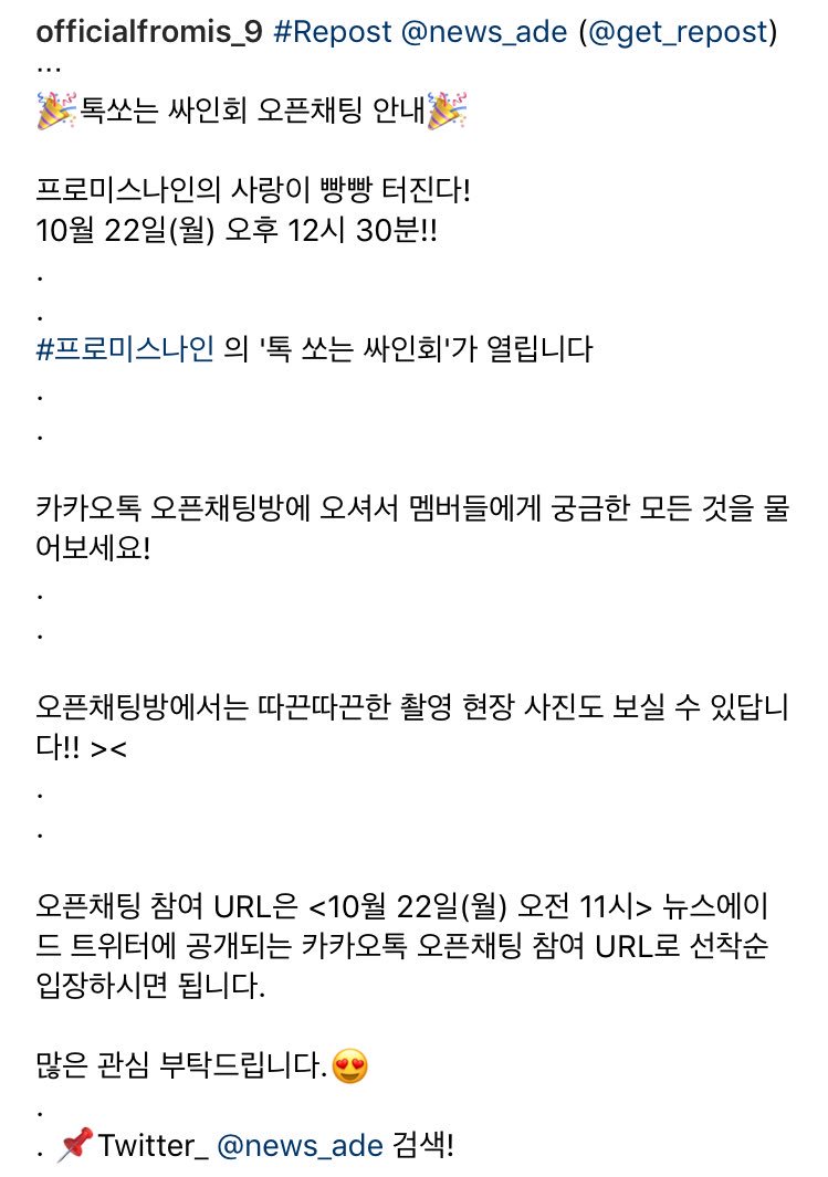 181019 프로미스나인 공싣 인스타그램