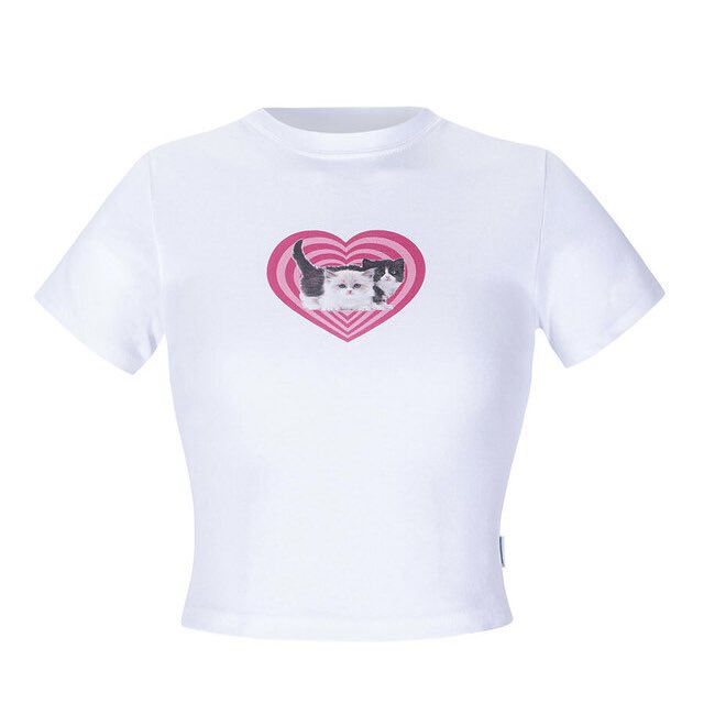 콜라주 슬림핏 반팔 티셔츠 - 화이트