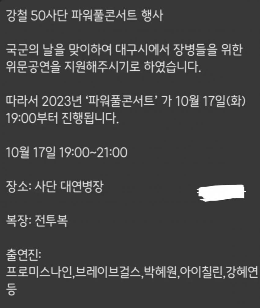 231017 75th Armed Forces Day Consolation Performance - Gangcheol 50th Division Powerful Concert